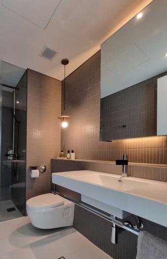 욕실 인테리어에서 가장 고민했던 게 거울 크기와 타일 디자인이었는데, 지금 보면 정말 탁월한 선택이었어요. 벽을 가득 채운 큰 거울 덕분에 공간이 훨씬 넓어 보이고, 심플한 패턴의 타일은 시간이 지나도 질리지 않아 마음에 들어요. 은은한 조명과 어우러지니 매일 호텔 욕실 쓰는 기분입니다. 사용성과 분위기 모두 만족스럽습니다.